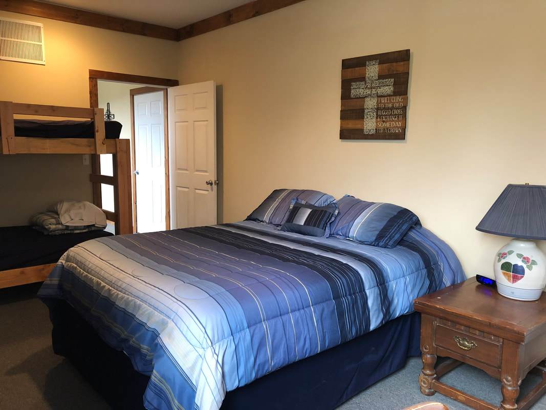 Located off the side of the meeting area, Shiloh’s comfy motel style guest rooms are the perfect place to house a guest speaker or pastor during your group’s weekend retreat.  This facility has two guest rooms; each with a queen size bed (linens provided) & a set of twin bunks (no linens on bunks)  These rooms share a semi-private bath in the hall & have access to the chapel kitchenette.  These rooms are also available for personal retreats during the week for pastors or church leaders, or church members with a pastoral recommendation.