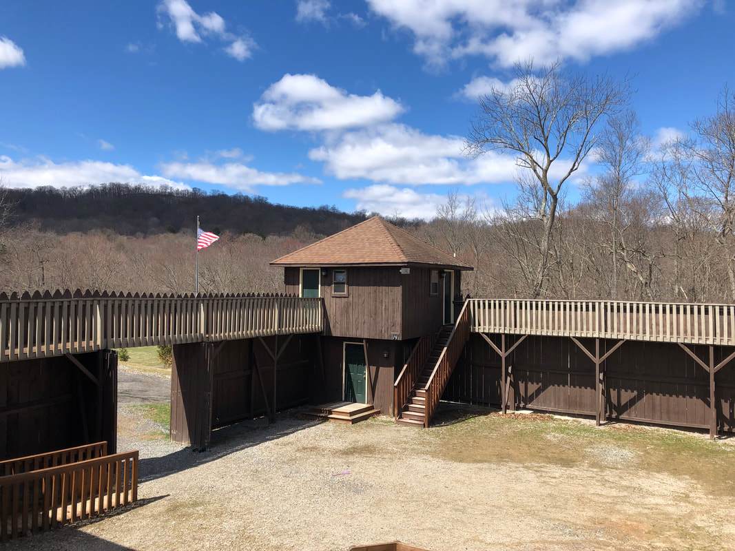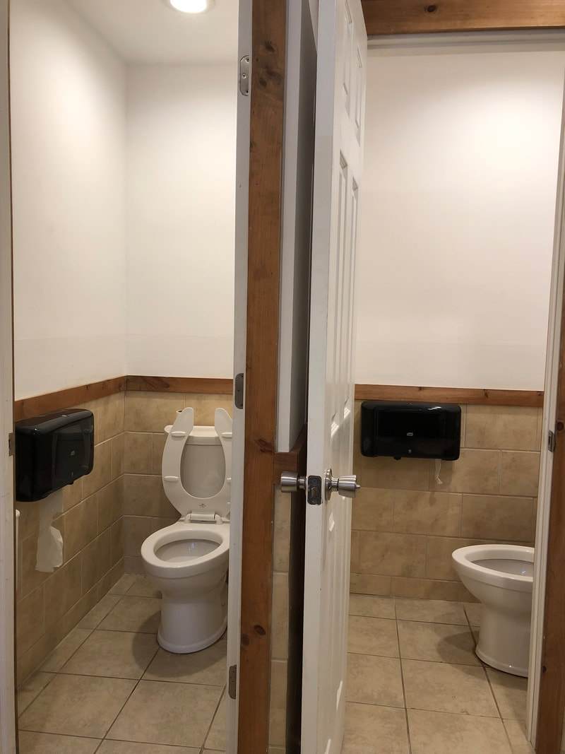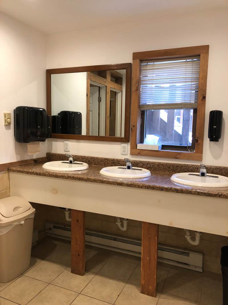 Fort Shiloh has two bath houses: One with two toilets, two showers, three sinks; Other with one toilet, one shower, two sinks (ADA compliant). The Fort is only a short walk from the Adventure Center, where more restroom and shower facilities are located as well.